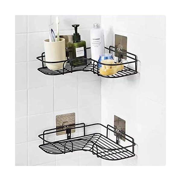 2-pack met verplaatsbare haken: de 2-pack hoekplank voor de badkamer is ontworpen om uw ruimte netjes te organiseren. Ideaal voor het opbergen van body wash, douchegel, shampoo, kam etc. De verstelbare haken zijn voor het ophangen van handdoek, borstel en scheermes. Houdt uw dagelijkse badkamerproducten schoon en netjes. Ideale extra opbergruimte voor uw badkamer, toilet, toilet en keuken.