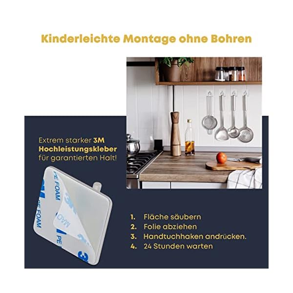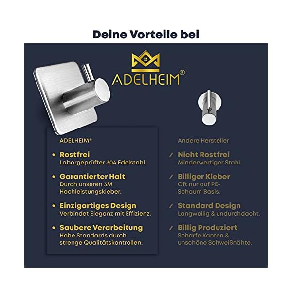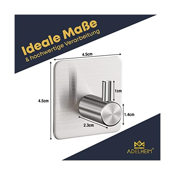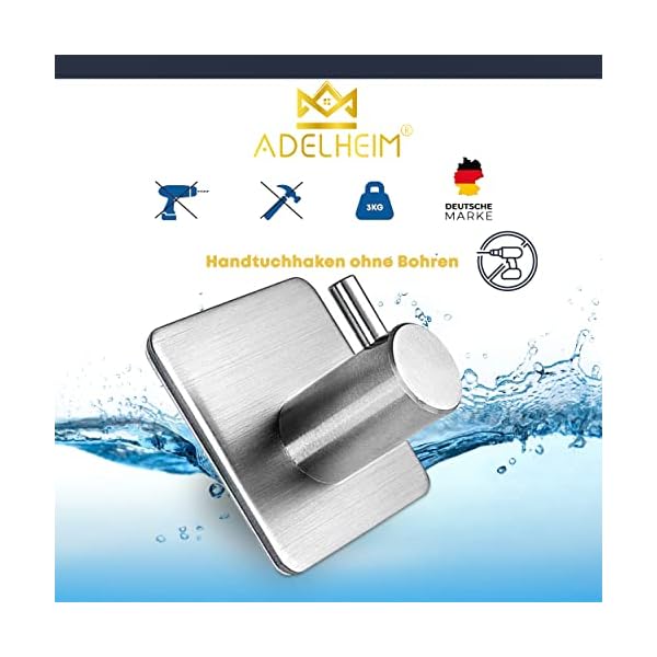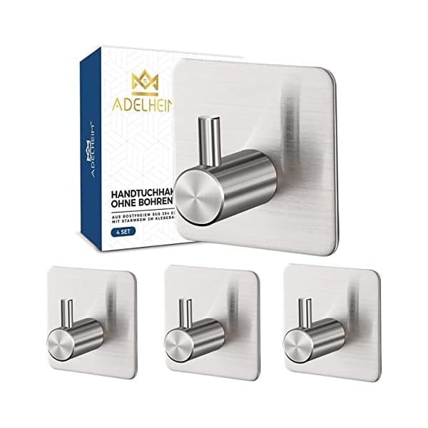 Adelheim® Set van 4 roestvrij stalen premium handdoekhaken zonder boren – gegarandeerde grip dankzij gecertificeerde 3M…