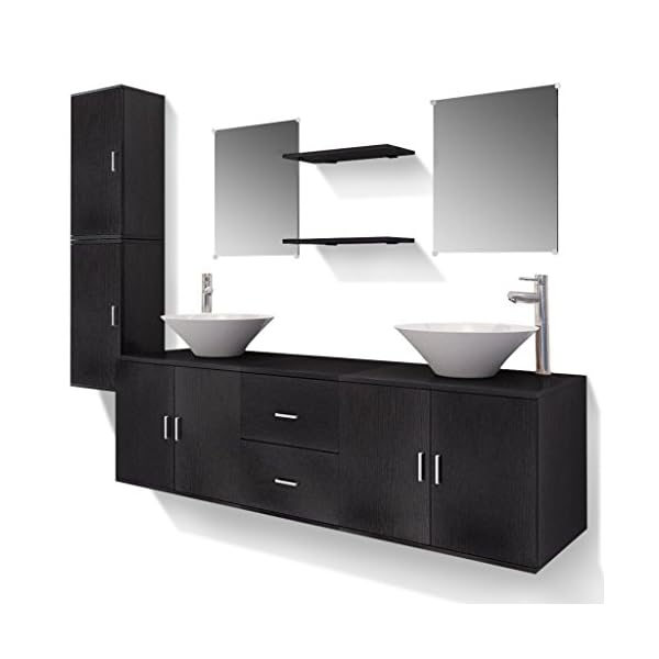 Deze complete set bevat 1 wandwastafelkast, 2 wandkasten, 2 spiegels, 2 legplanken, 2 wastafels en 2 kranen en en maakt je badkamer perfect af en optimaliseert je ruimte zonder in te boeten aan stijl.